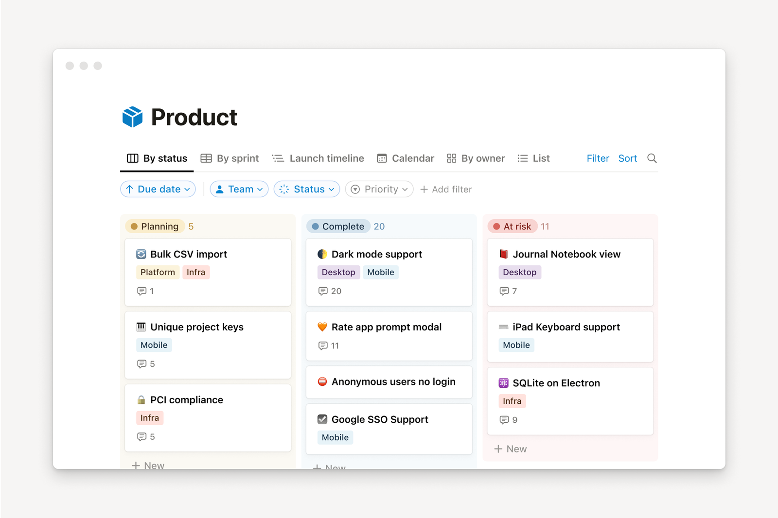 Trello est parfait pour gérer un seul projet en mode kanban, mais il devient vite limité dès qu’on veut lier plusieurs types de contenus.